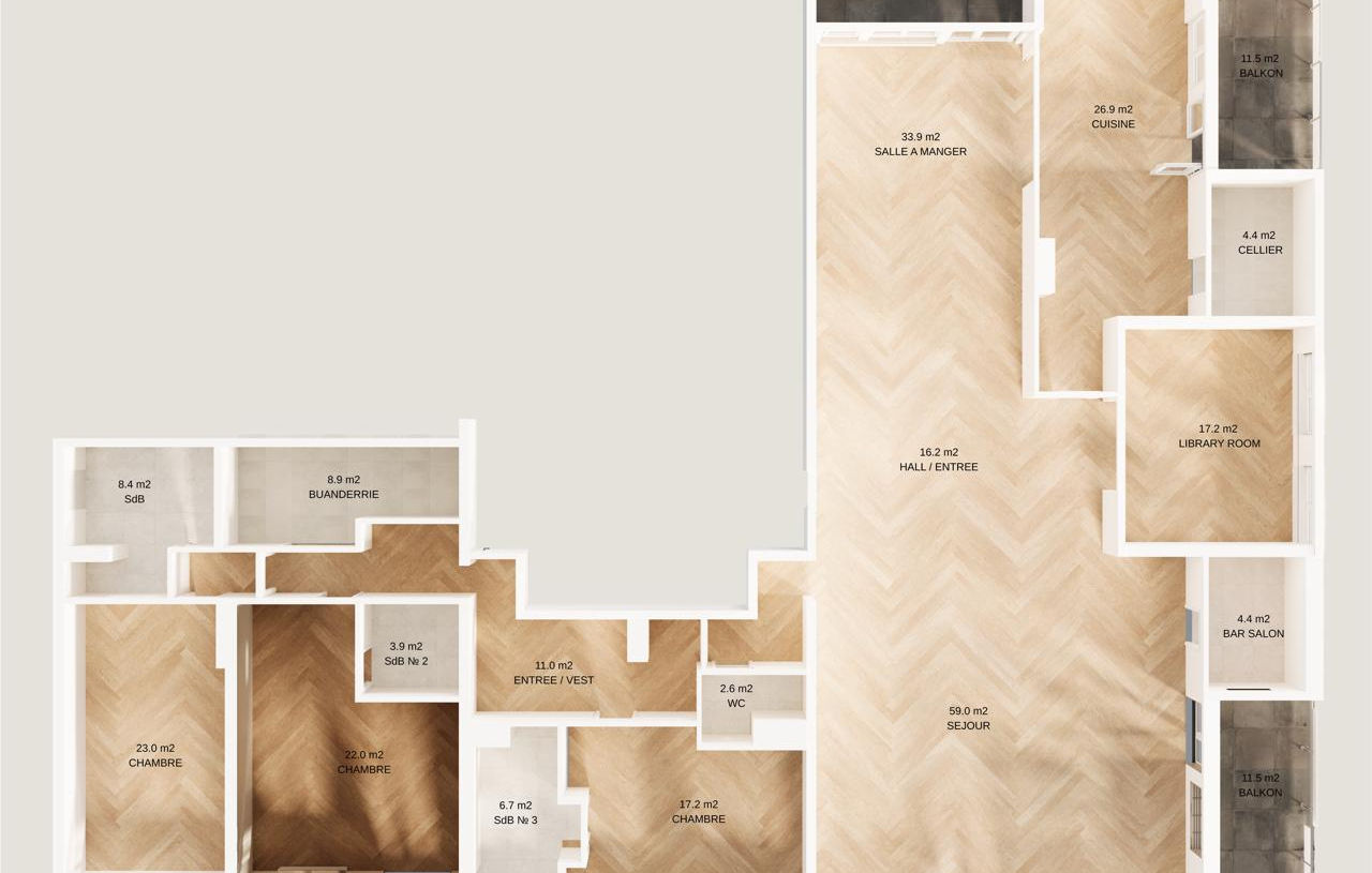 • Un 5ᵉ étage lumineux doté de grands balcons avec vue dégagée